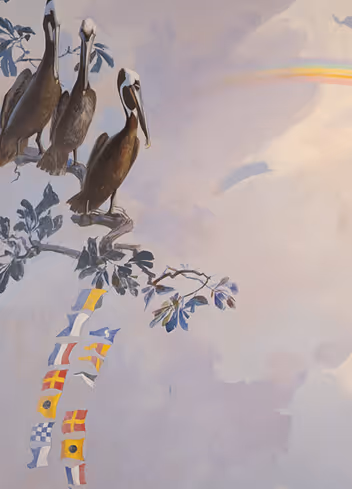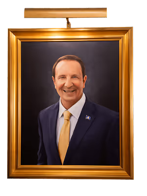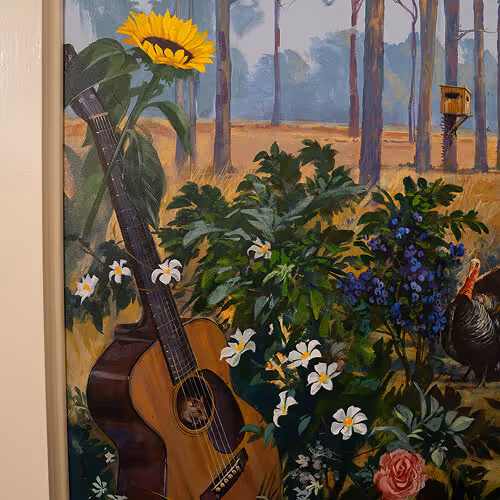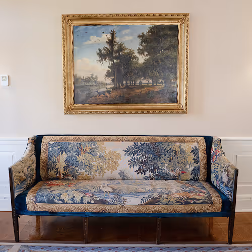 The foyer’s hand-painted mural wraps visitors in Louisiana’s beauty, honoring each governor with personalized touches.