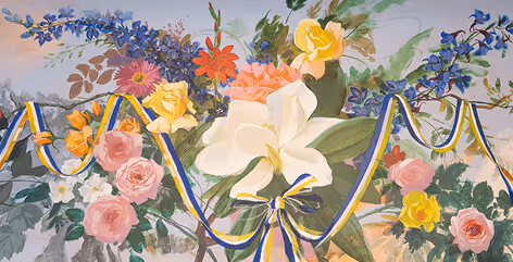 Since 2003, artist Auseklis Ozols returns to the Mansion every 4 years to update the mural with personal touches for each sitting governor and their families.